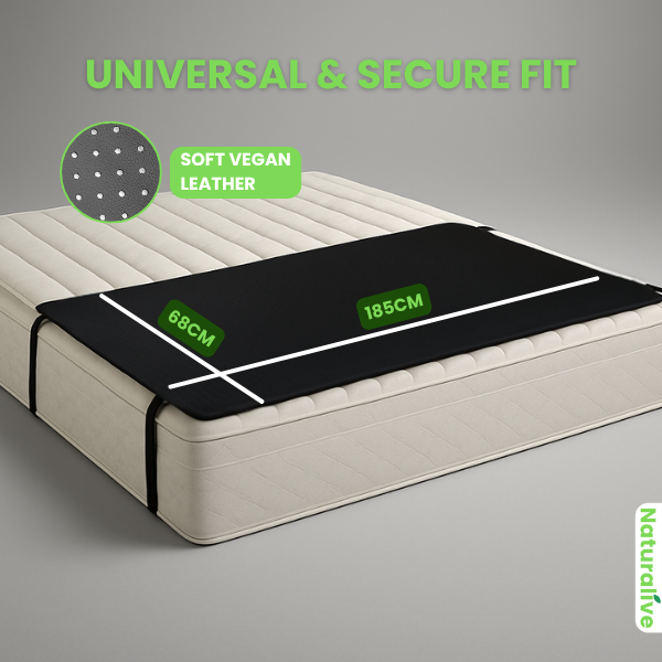 🌿 Reconnect with the Earth's natural energy overnight using the Naturalive Earthing Leather Mattress Topper, a premium grounding solution crafted from breathable vegan leather. This innovative topper helps neutralize body voltage, promoting restorative sleep, reduced inflammation, and enhanced well-being while you rest. With dimensions of 185cm x 68cm, it offers a universal fit for most mattresses, secured by adjustable elastic straps for all-night stability.