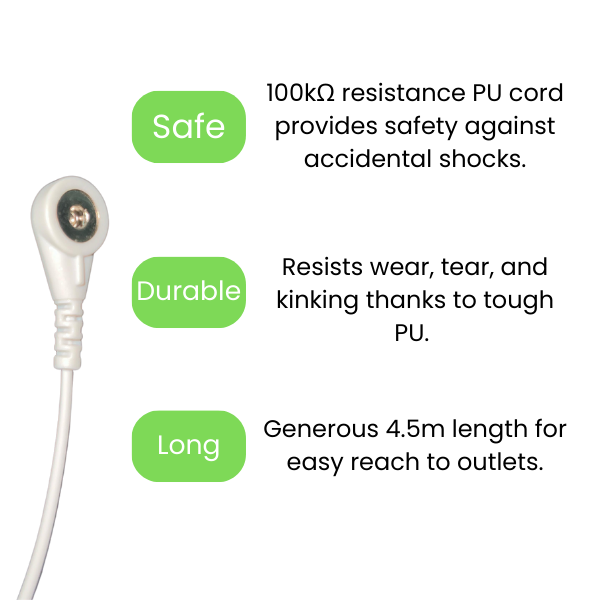 Features a high-quality, 4.5m conductive cable for maximum flexibility and reach. Ideal for connecting grounding mats, sheets, or other earthing products to a grounded outlet.